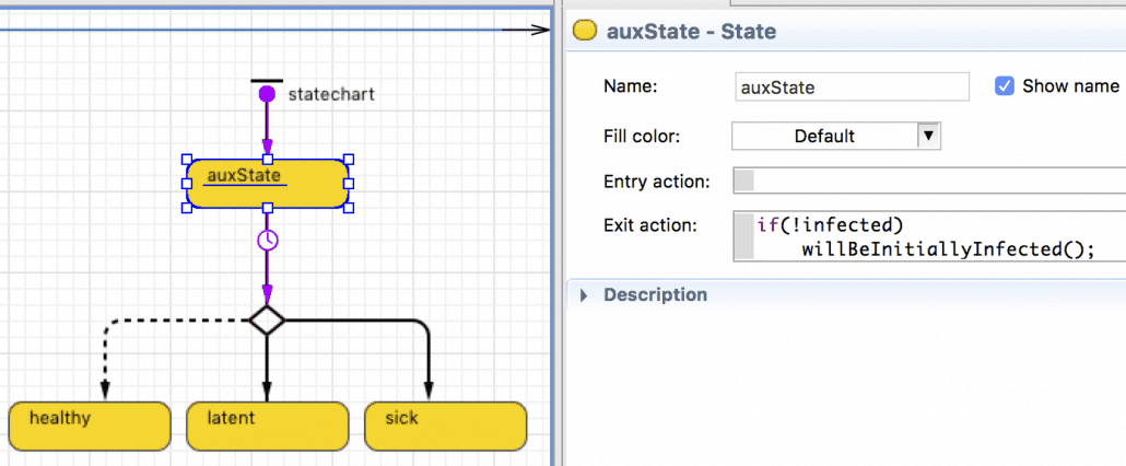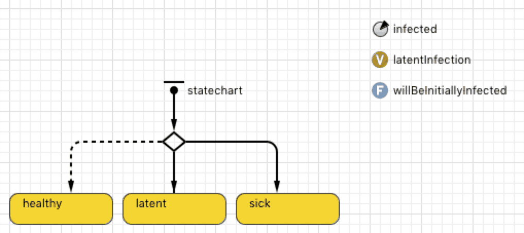 On the branch, the agent will move to the sick state if infected is true and it will move to the latent state if latentInfection is true. In any other case it will move to the healthy state.