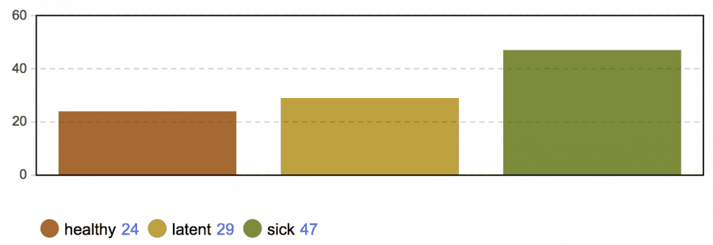As seen in figure 2, three states are possible in this model: healthy, latent and sick. The parameter “infected” will define if the agent is infected in its creation (true or false). The variable “latentInfection” will define if the agent is in the latent state in its creation (true or false) and a function “willBeInitiallyInfected” defines the value of “latentInfection” as seen in the following code: